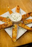 A classic snack, our garlic knots are strips of pizza dough tied in a knot, baked, and then topped with melted butter, garlic, and parsley.