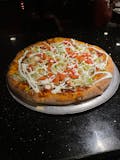 Sauteed chicken breast, broccoli, roasted garlic, roasted peppers, ricotta, and mozzarella.